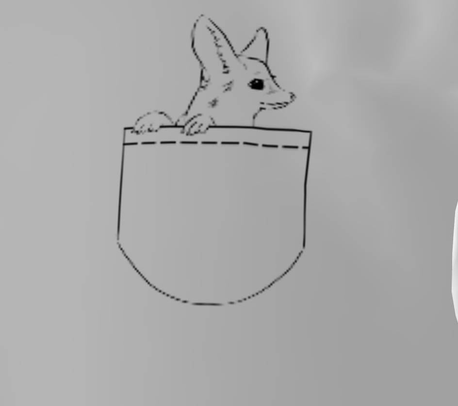 背面にとことこ歩くフェネックと正面にはポケットから顔を覗かせるフェネックのデザインです。